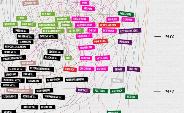 Uma animação que mostra cem anos de estilos musicais relacionados ao